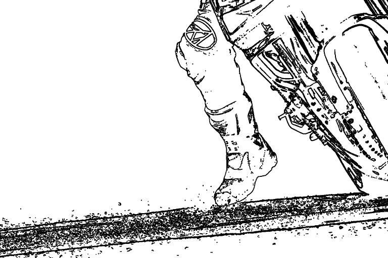 Die auffälligste entwicklung im Berreich Fahrtechnik wird heute dem Finnen Jarno Karl Keimo Saarinen zugeschrieben. "der fliegende Finne", so Saarinen´s Spitzname, fuhr zunächst Eisspeedway. Wie auf dem oberen Foto zu sehen zu sehen ist es dort gang und gebe das Bein auf der Kurveninnenseite vom Motorrad weg zu stecken um die fahrt um die Kurve zu stabilisieren. Saarinen adaptierte das auf die Straßenrennmaschine und Spreizte das Kinne aktiv vom Tank weg.